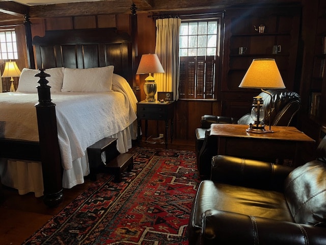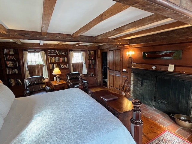 The Captain Hiram Harding Room is located on the first floor of our Captain’s Cottage. It is handsomely outfitted with original pumpkin floors, walnut walls, and beamed ceilings. The spacious room beckons you to relax with a king-size bed, two leather reading chairs, a crafted mini bar, and a large wood burning fireplace. The private bathroom features a walk-in shower. Other amenities include air conditioning, a refrigerator, coffee maker, and a Smart TV. 399 square feet.